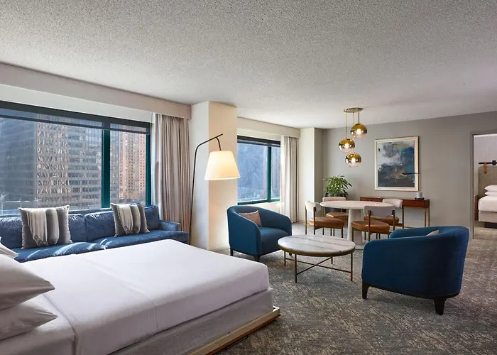 In den komfortablen Zimmern des Hotels gibt es einen Lounge-Bereich, eine Kaffeemaschine und einen Safe. Sie sind mit einer Minibar zur Selbstverpflegung sowie mit einem Flachbild-TV ausgestattet. Die privaten Badezimmer bieten einen Haartrockner und Morgenmäntel an. Zu den weiteren Annehmlichkeiten gehören ein Haartrockner und Morgenmäntel. Man kann einen spektakulären Blick auf den Michigansee von den Zimmern aus bewundern.